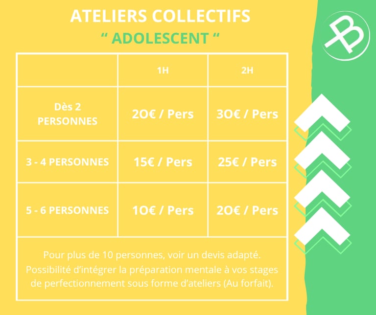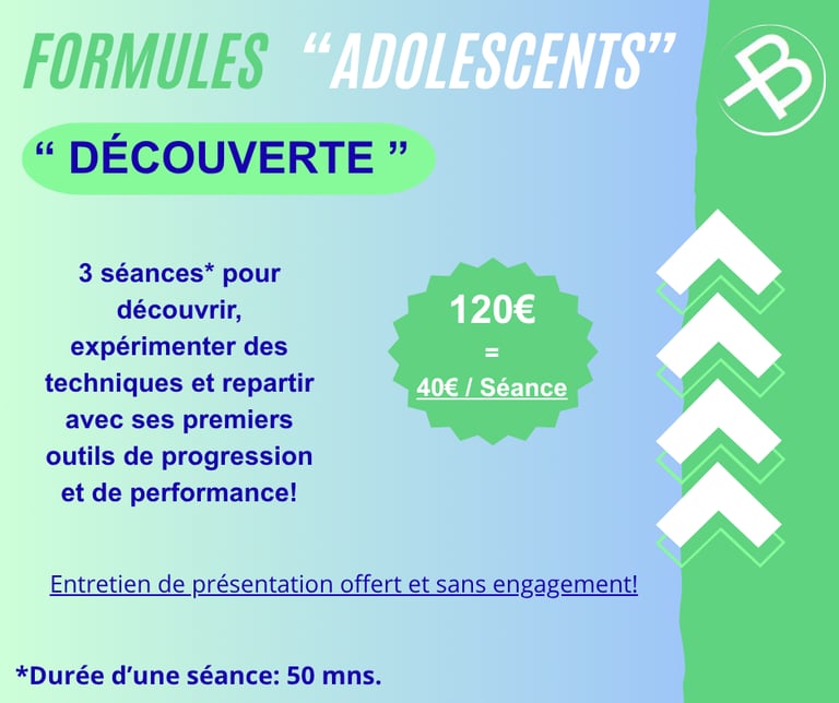 Mes séances visent à transmettre un sentiment de liberté à l'adolescent(e) : liberté de penser sa pratique, de construire son identité de sportif en fonction de ce qu'il est, et de décrypter ses propres ressentis sans jugement.
