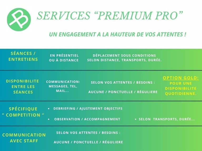 Avec les services "PREMIUM PRO", je vous propose un cadre personnalisé et unique qui réponde à vos d'exigences.